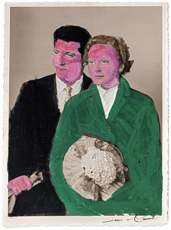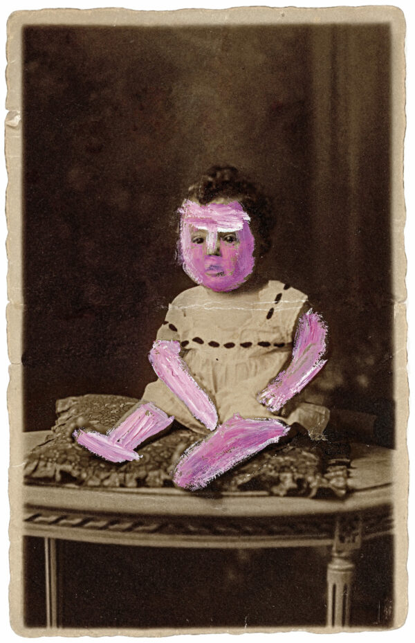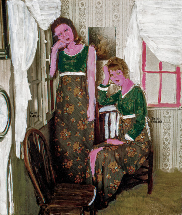Adolescente, Marie Bodson se fait remarquer dans son école spécialisée pour ses capacités créatives. Grâce à son enseignante, elle entre en contact avec La « S » Grand Atelier qu’elle intègre en 2012, dès la fin de sa scolarité. Ses réalisations sont protéiformes. Elle s’essaye au crayon, au feutre, à la broderie, au monotype, aux techniques numériques, mais aussi à la peinture sur photographies. Nourrie de pop culture, elle aime parcourir les magazines people à la recherche de vedettes de cinéma, de couples modèle ou de ménages hollywoodiens, ces codes iconographiques de la presse féminine qui traduisent sa propre vision idéalisée de la vie affective. Elle use également de photos personnelles, de portraits de famille et de cartes postales qui lui évoquent l’amour et lui permettent d’en parcourir intimement les nombreuses dimensions (domestique, maritale, érotique, amicale, etc.). Bodson travaille ses images à la peinture acrylique, choisissant avec intérêt les endroits exacts où il lui faut intervenir. Ces zones, pour la plupart charnelles, se voient habillées de couleurs vives, presque comme un vêtement.