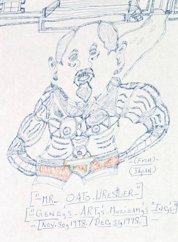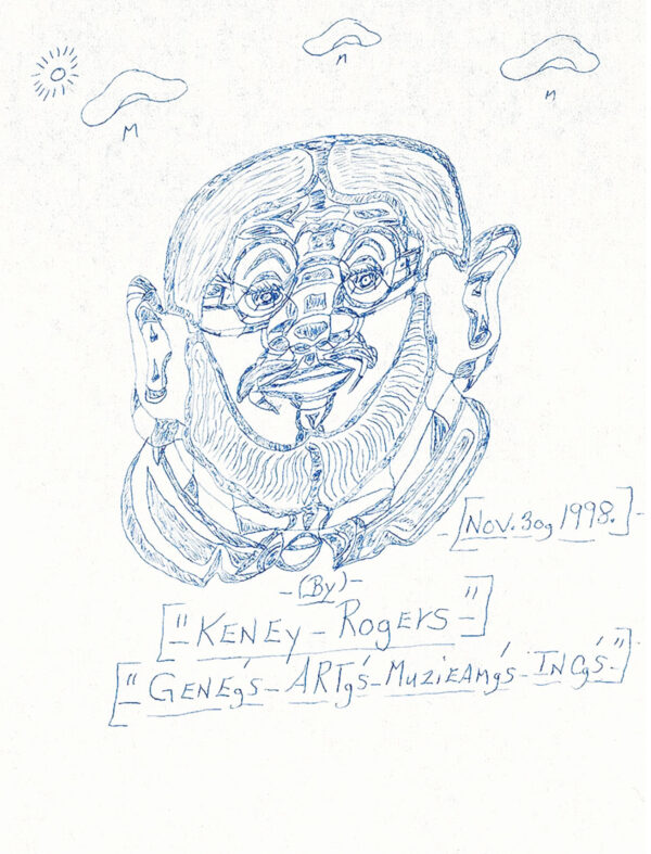 Gene Merritt n’a que douze ans lorsque sa mère se suicide. Incapable de suivre une scolarité normale, il vit de petits boulots et passe ses soirées à boire en compagnie de son père. À la mort de celui-ci en 1972, il vit sous la tutelle des services sociaux, laissé pendant quinze ans dans une famille d’accueil qui ne se soucie guère de sa clochardisation. Vers 1992, il commence à dessiner. Ses thèmes favoris sont des vedettes de cinéma, des musiciens et des chanteurs, dont il figure les visages à l’aide de segments formant comme des puzzles. Il échange ses dessins, qu’il nomme « paperworks », contre un café ou un repas. Il vit dans une maison mise à sa disposition par une association caritative, dans laquelle il est entouré de deux téléviseurs allumés en permanence et d’une CB qu’il affectionne.