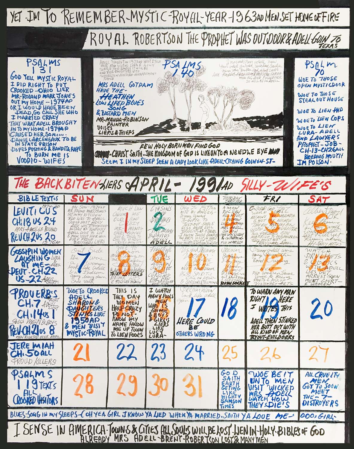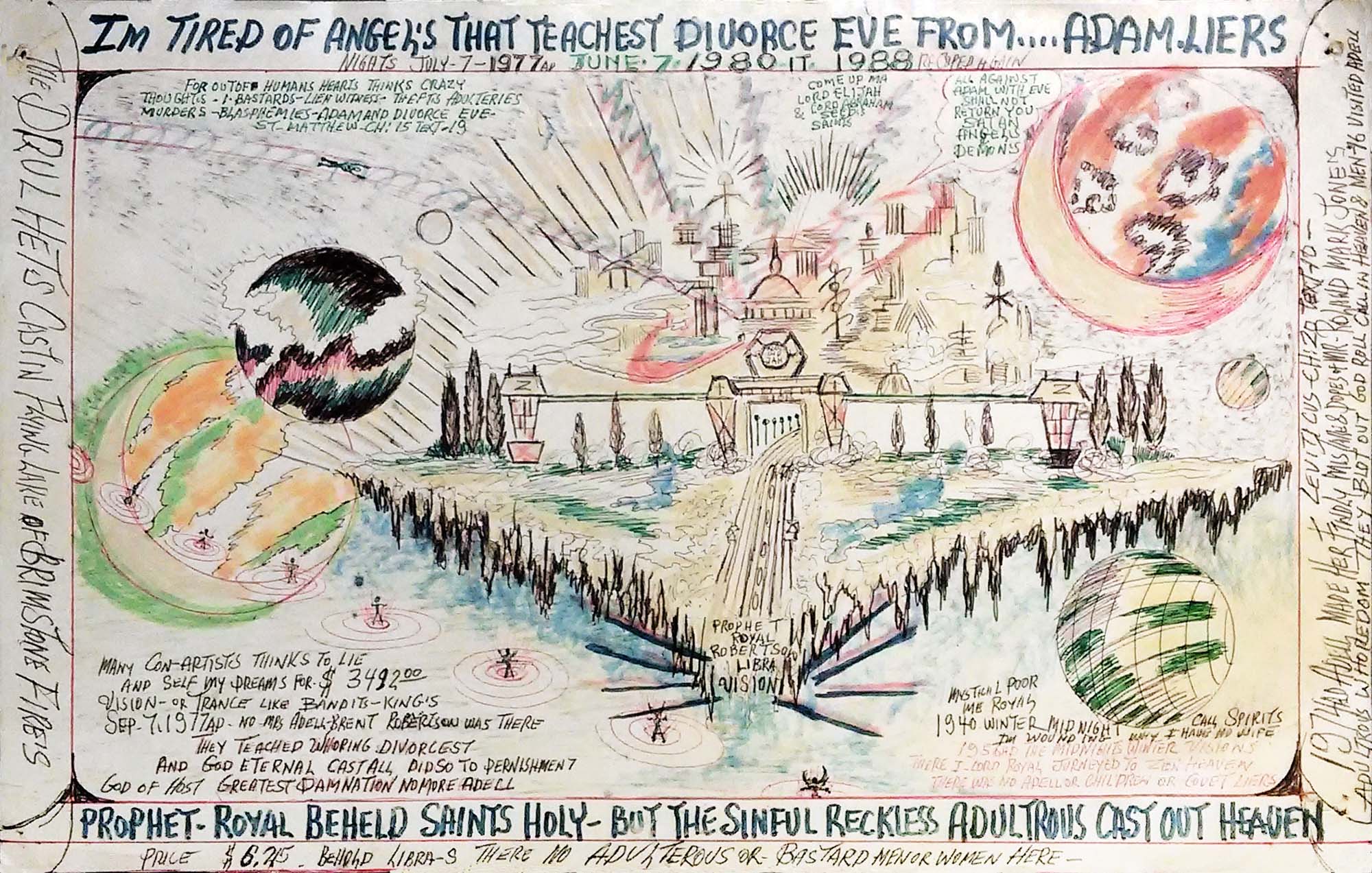 Dévasté, Robertson s’isole, adoptant un monologue dénonciateur et nourrissant une haine féroce envers son ex-épouse et les femmes en général. Atteint de schizophrénie paranoïde, il affirme voir Dieu piloter des vaisseaux spatiaux, se proclame « Prophet » et crée une œuvre reflétant ses visions apocalyptiques et son aversion délirante pour les femmes.