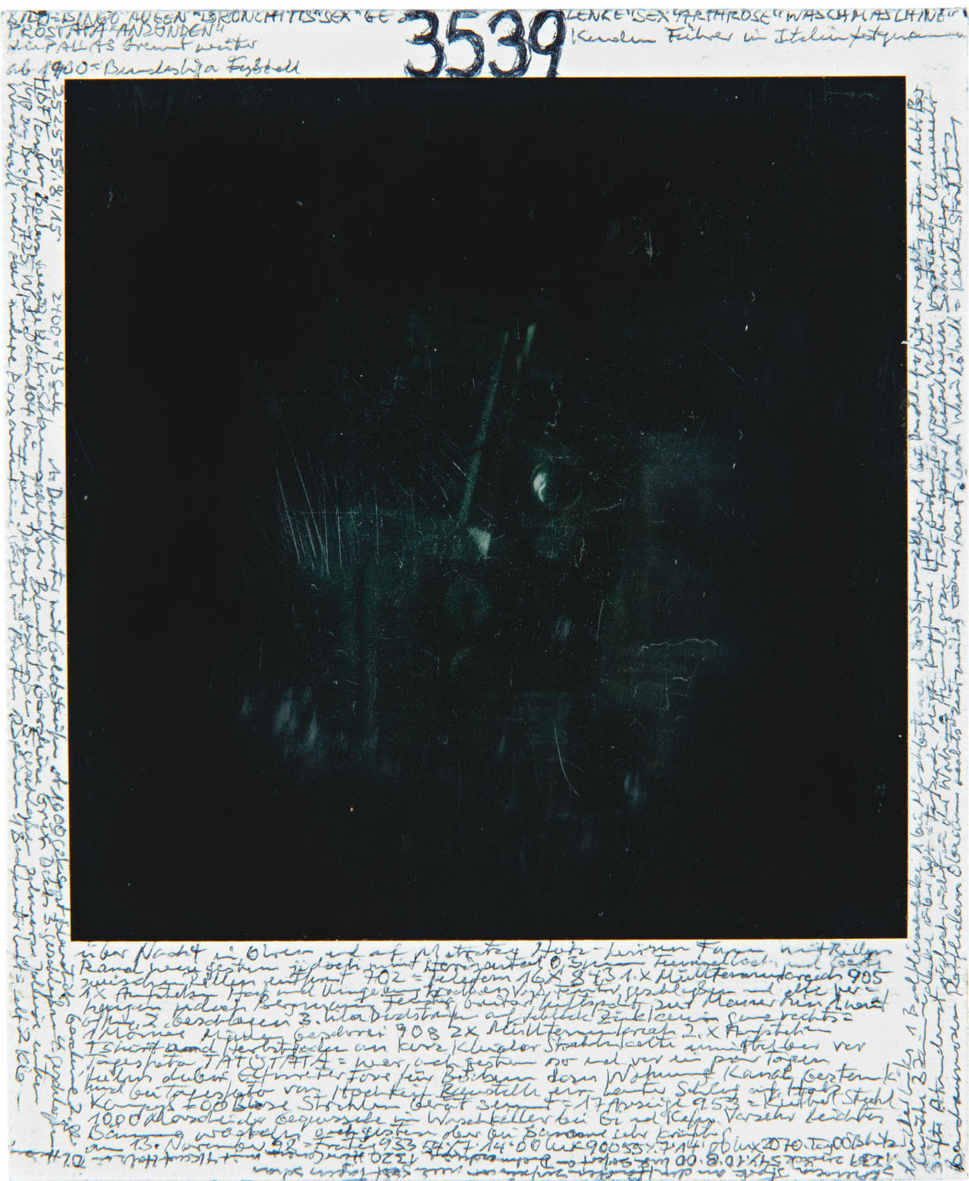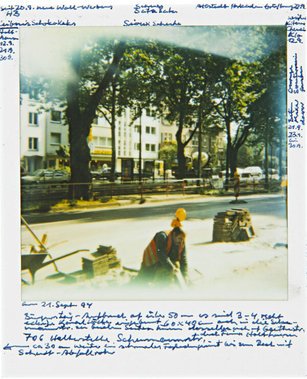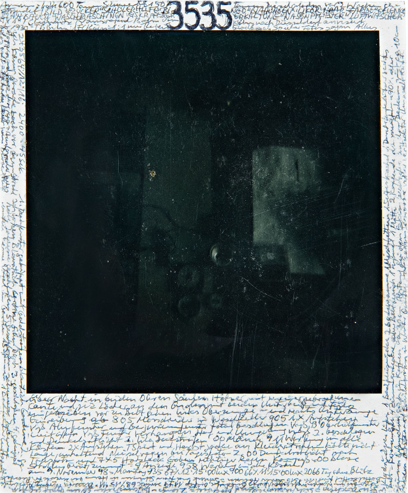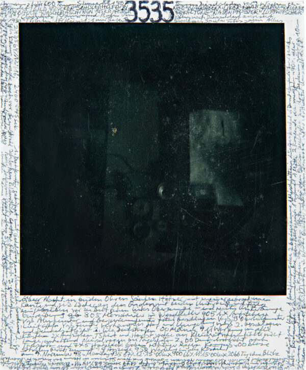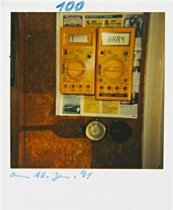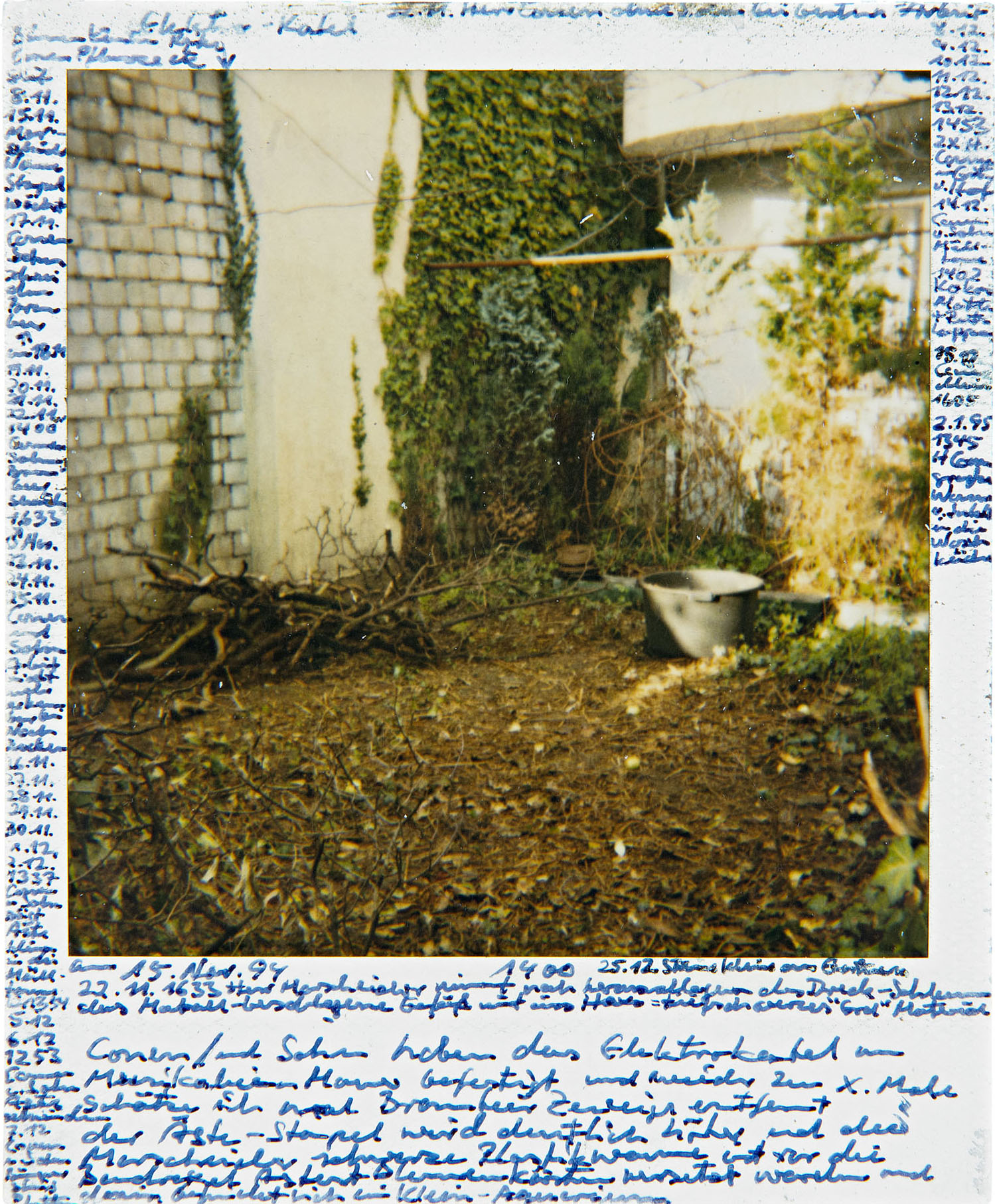 Horst Ademeit spent the last 40 years of his life to documenting the existence of “cold rays,” recording their detrimental effect on himself and his surroundings. To this end, he took thousands of Polaroid and (later) digital photographs, which he numbered and dated and used as a record of his everyday observations. On the margins of the photographs, he wrote in nearly illegible writing the smells, sounds and atmosphere that surrounded him the moment he pressed the shutter release. His table was piled with magazines (mostly BILD-Zeitung), letters and food; using a Geiger counter, light meter and other measuring devices, he calculated the intensity of the cold rays. He tried to discover who was responsible for all of his and the world’s problems. “It is just a question of time before I catch them red-handed,” he claimed. He used a lathe to make hundreds of little balls, which he carried with him in order to disrupt the cold rays. His daily routine was fully determined by his inventorying and by the logical rules of his system.