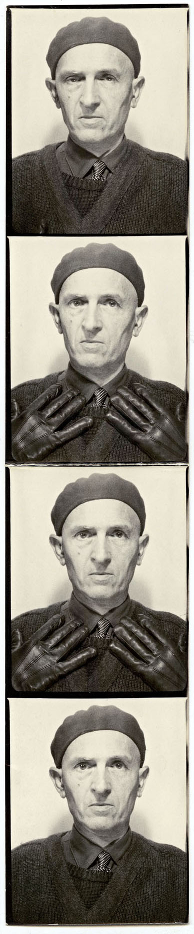 “For nearly thirty years, a man indulged in the game of photographic duplications. In the privacy of his apartment, he staged the scene, disguising himself and taking pictures, in a tireless repetition of the operation. It doesn’t matter if the photographic image looks homemade and clumsy or the way others might look at it. Through the artifice of staging and photographic recording, he gives shape to his fantasy, invents himself as a hero and enjoys himself.