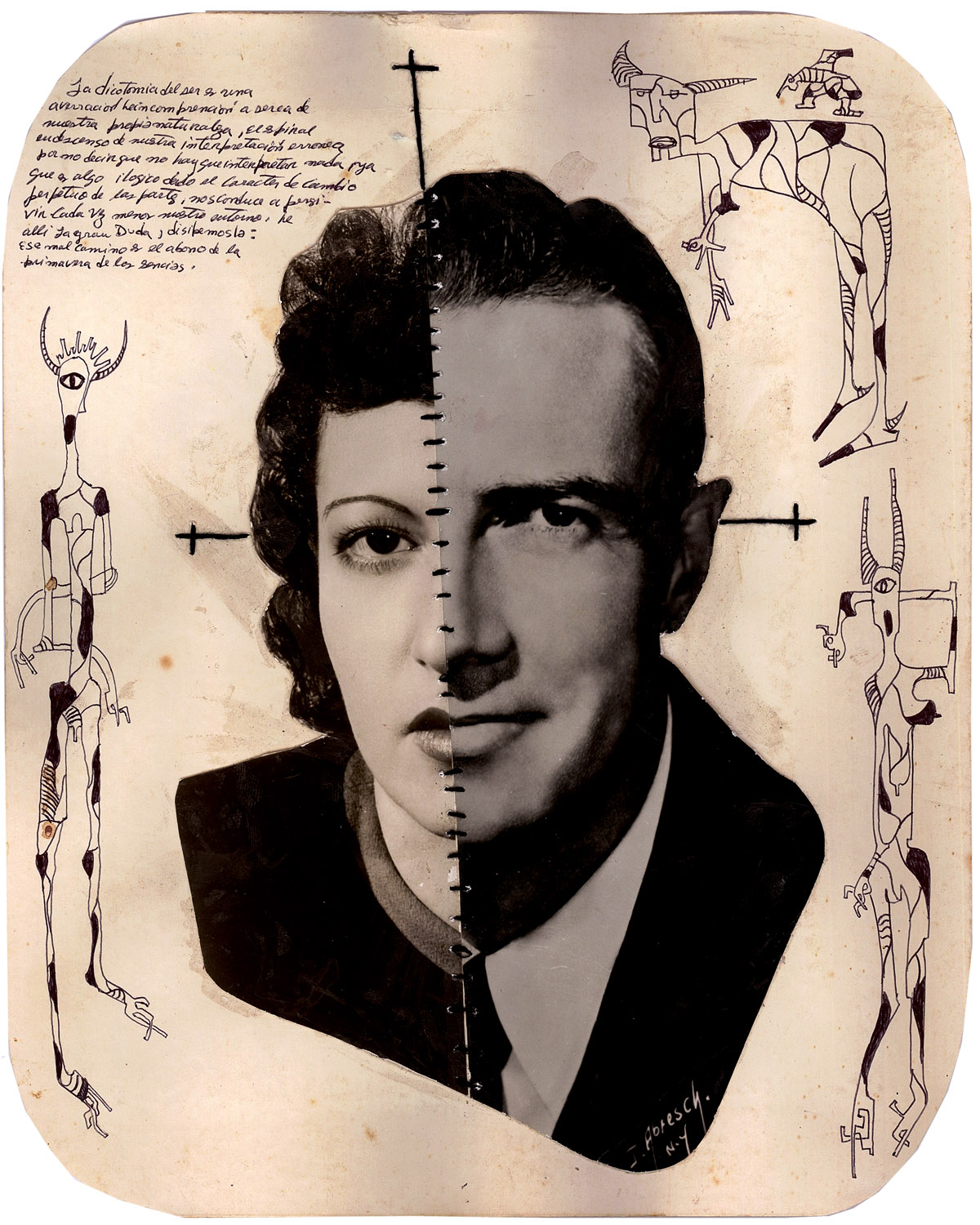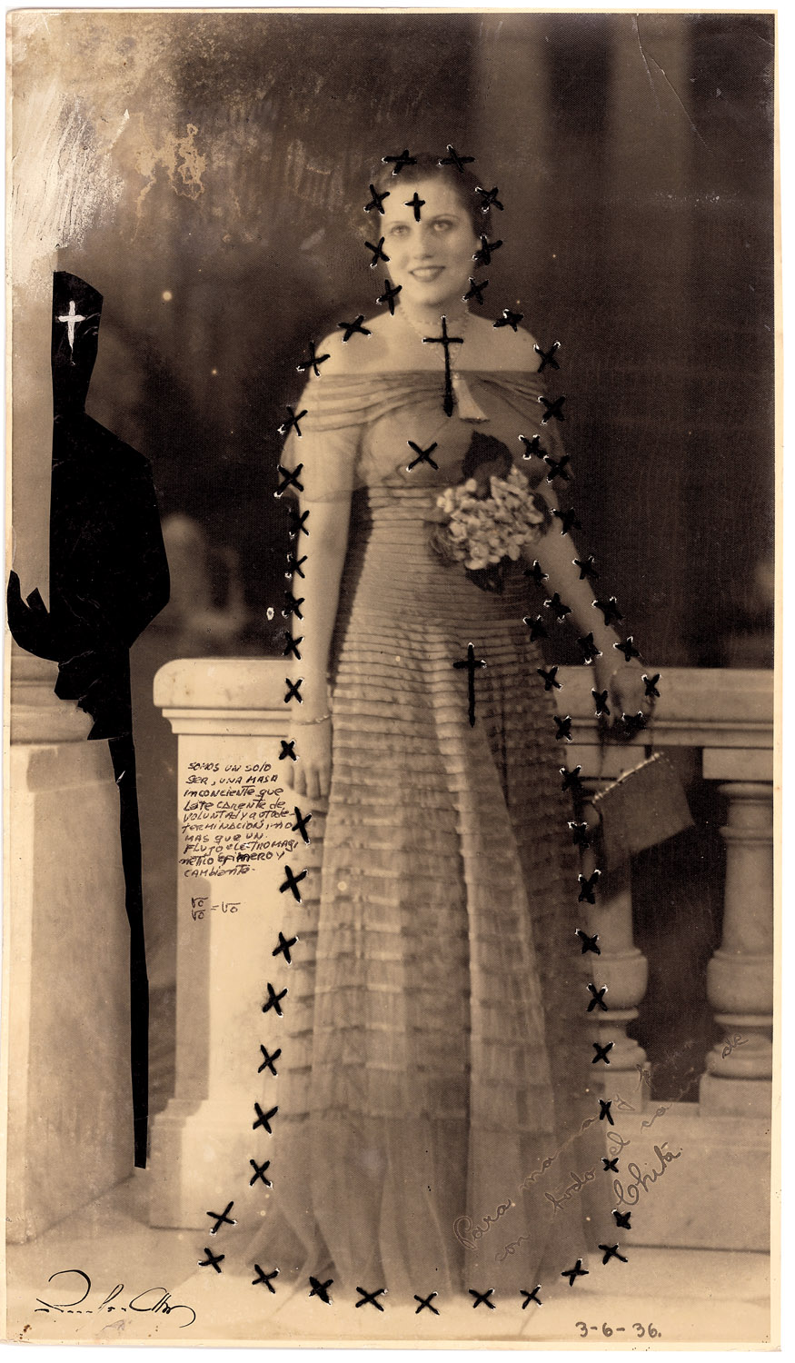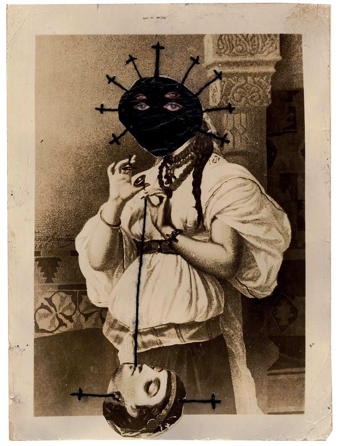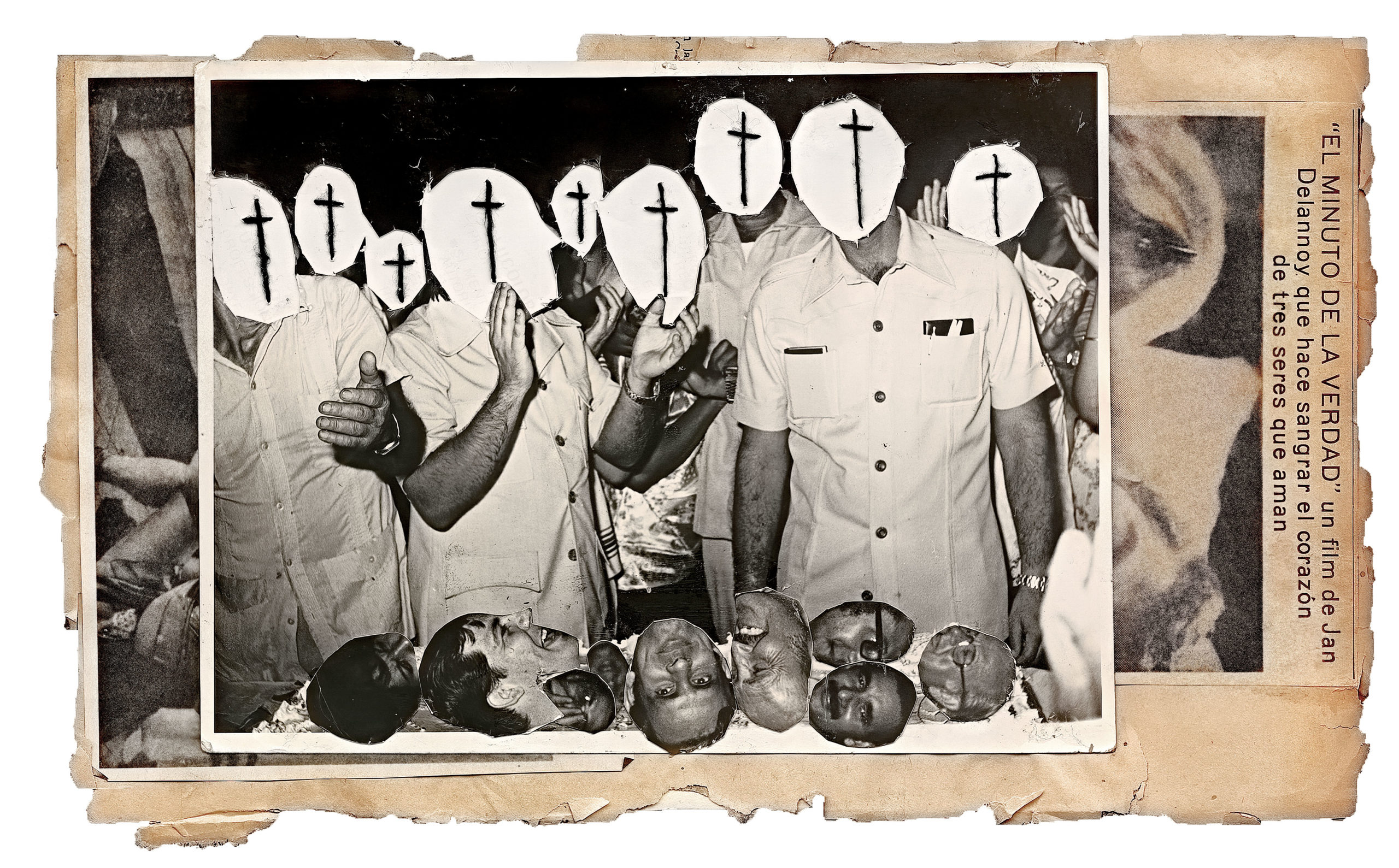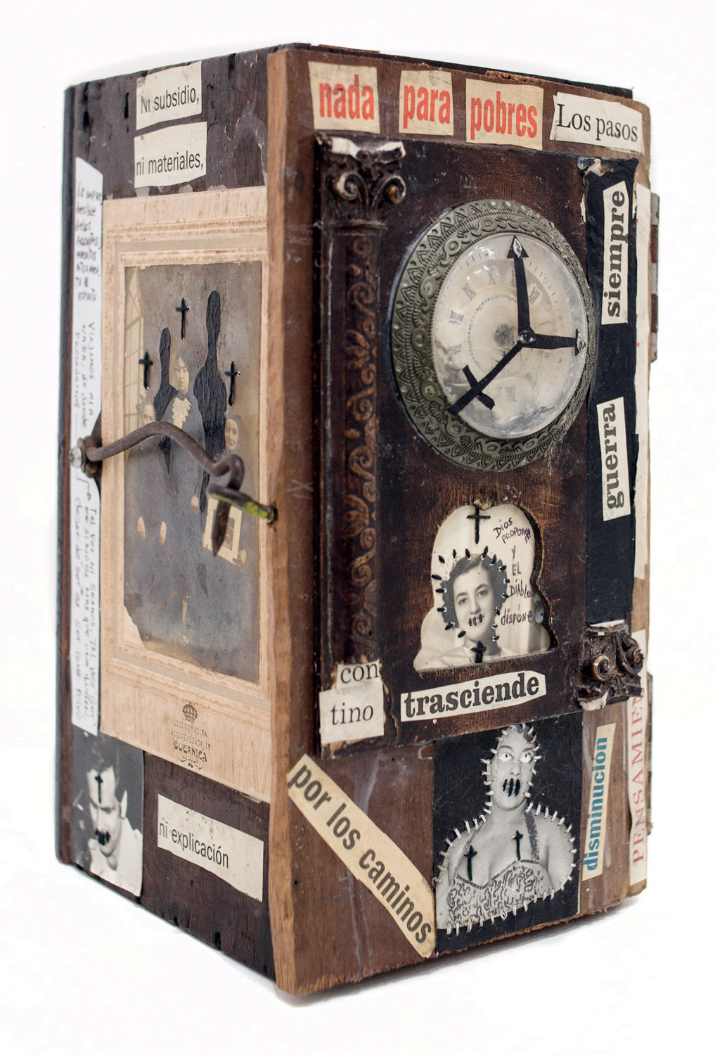 Born in Havana Jorge Alberto Cadi, known as “El Buzo” — the diver — has no other family than his brother, who like him has schizophrenia. He tirelessly walks the streets of the city in search of thrown away objects. For more than twenty years, he has been collecting suitcases, boxes, photographs and newspaper clippings whose path he has crossed, literally and figuratively. Not to rehabilitate them, but because he detects in these objects a strong potential for extrapolation, wonderful narrative possibilities. The photographs remain his material of choice, as for the objects, he takes over all of their surfaces, proceeding as much by hybridization as by concretion, gluing, cutting, sewing bits together. Thus, touching family scenes are transformed into grotesque, even satanic images, where the characters are deprived of their faces or characterized by devilish features. The suitcase — a symbol, in Cuba, of heartbreak, wandering, separations — becomes, for him, the place of possibilities and unexpected reunions. “When you close the suitcase, you bring together people who have never seen each other. They go back to travel… Sometimes in another dimension.” But it is also about what has been sewn together and torn apart, given a new possibility to continue. “We are a bit stitched up by time.” he confides.