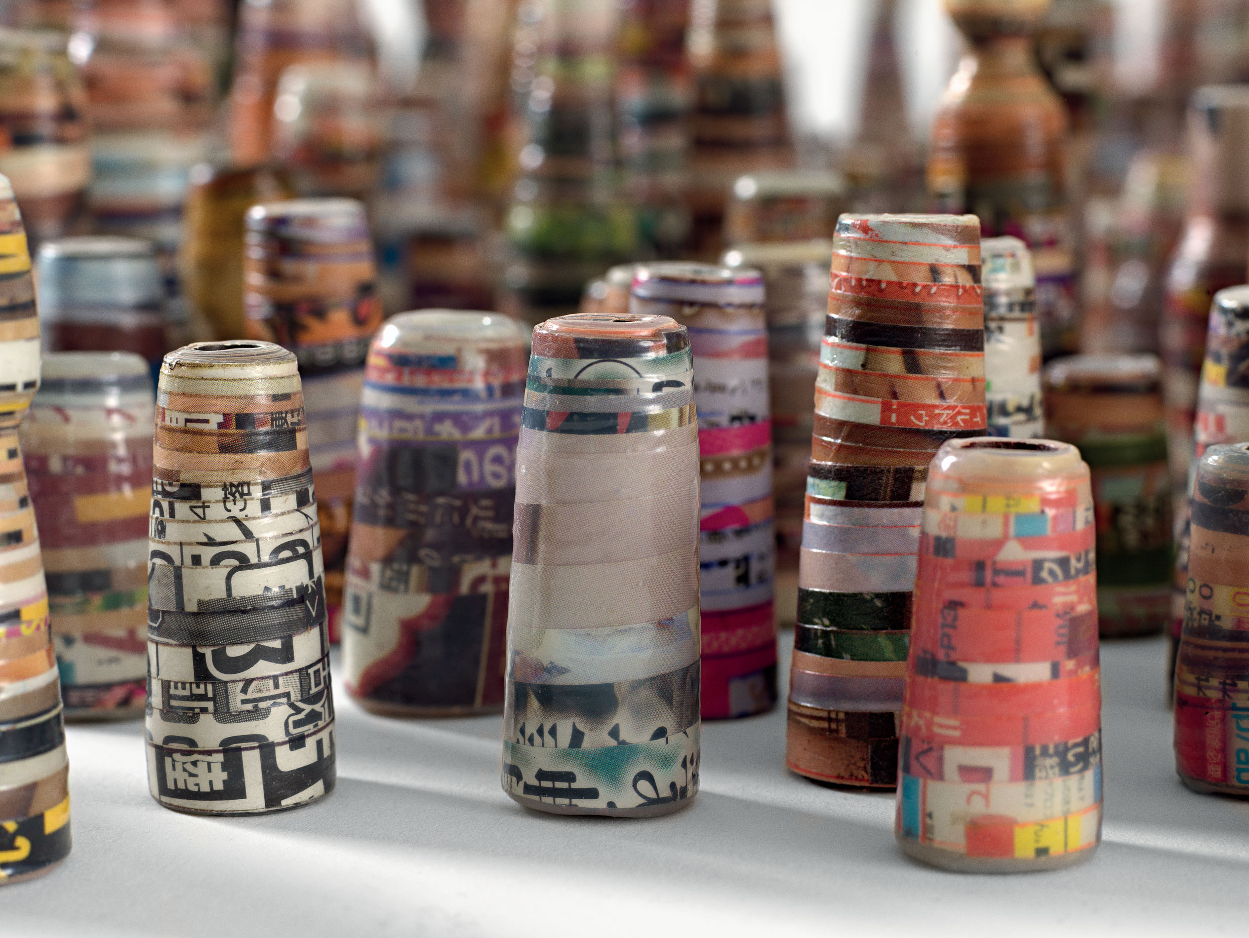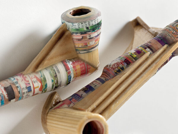 An employee at a shipyard in Onomichi, Japan, Kazuo Handa devoted all his free time to a single obsession: smoking. To satisfy this passion, he set up an extraordinary system—a true ceremony—in which, year after year, he made his own pipes, cigarette holders, ashtrays, and pipe stands from pages of erotic magazines cut into strips and glued together. More than eight hundred items exist. He died at age sixty-four of mouth cancer, leaving behind the enigma of what led him to associate the pleasures of his tobacco addiction with erotic images—perhaps a ritual for achieving extreme sexual pleasure.