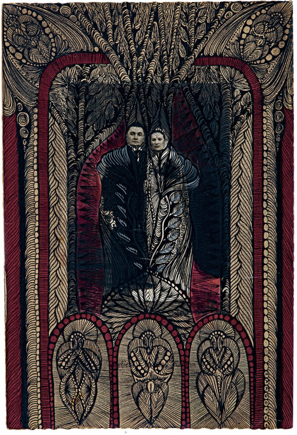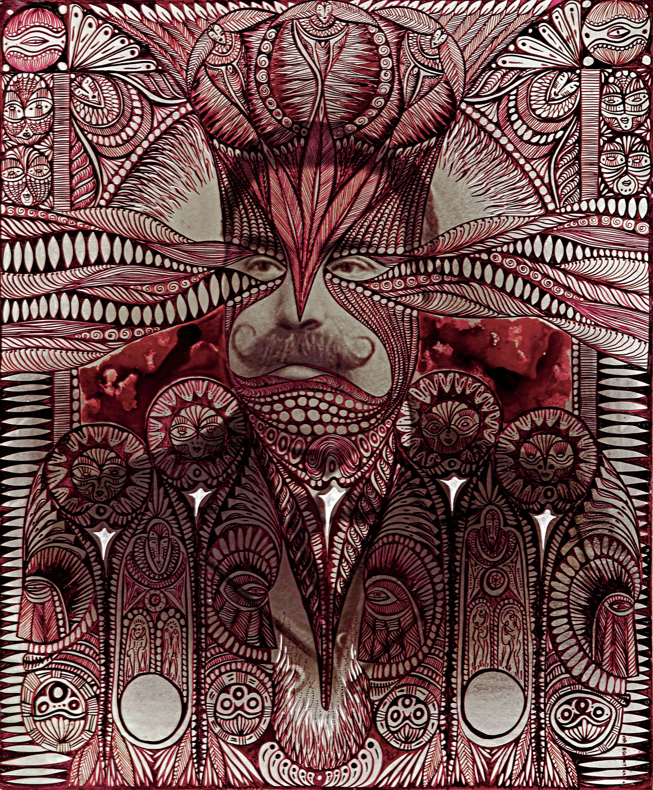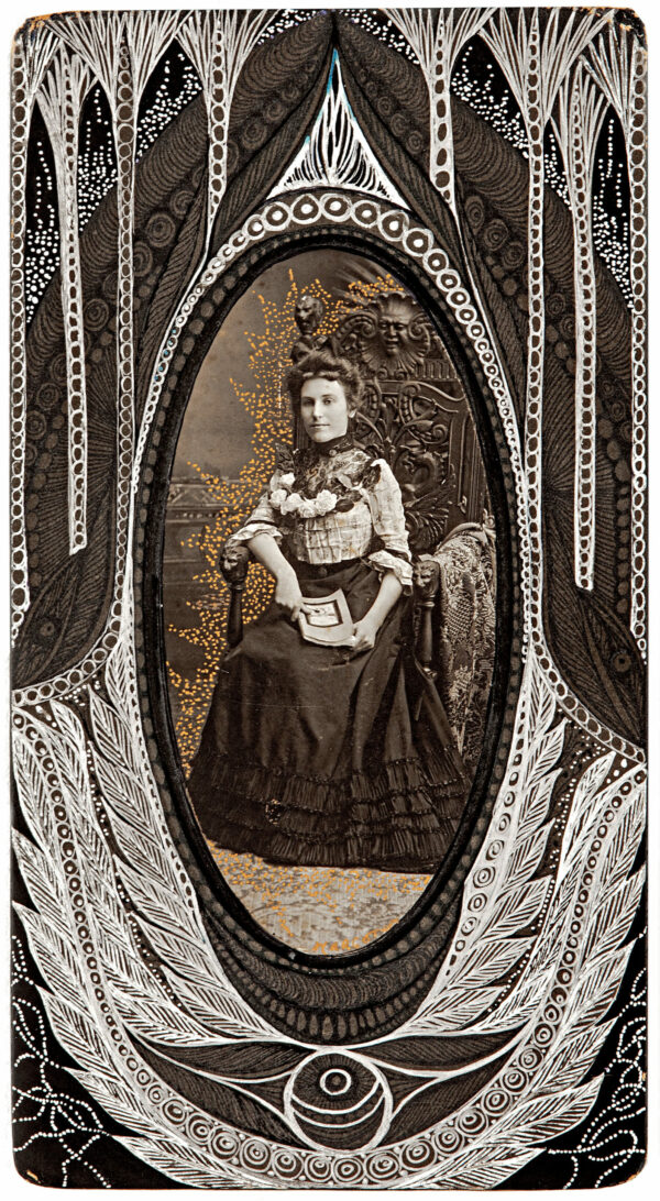 Margot souhaite qu’on l’appelle ainsi. Issue d’une famille du monde paysan, elle est d’abord fleuriste avant de débuter en 2014 une pratique artistique dont elle fait son activité principale. Elle utilise l’encre de chine, les crayons, les pastels et le stylo à bille, pour réaliser de très grands formats sur papier représentant des formes abstraites desquelles surgissent des figures humaines. Elle travaille aussi sur des photographies d’archives. Le résultat fait penser quelquefois à des tatouages, quelquefois à des scarifications, ou encore à des enluminures qui encadrent les personnages. De ces dessins émergent des visages qui font écho au sujet photographique comme si celui-ci était possédé par des esprits.