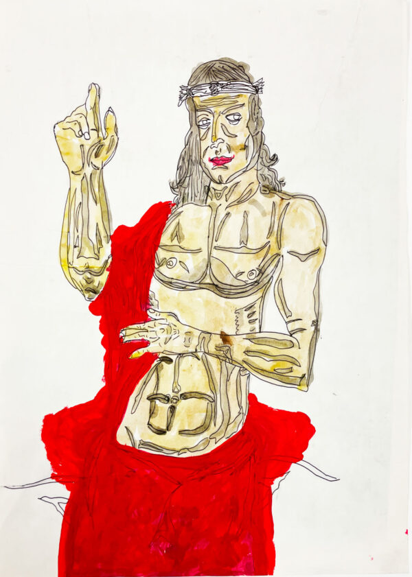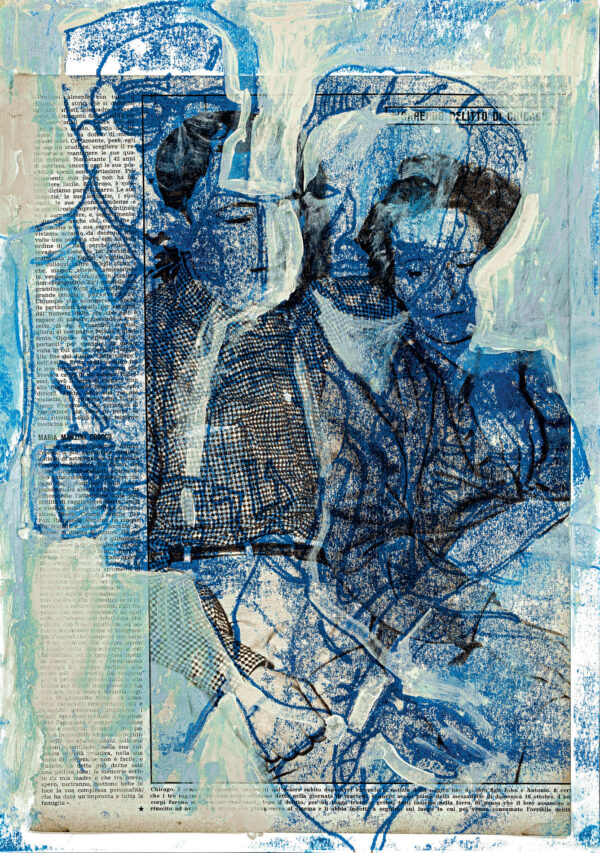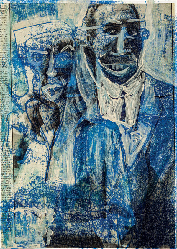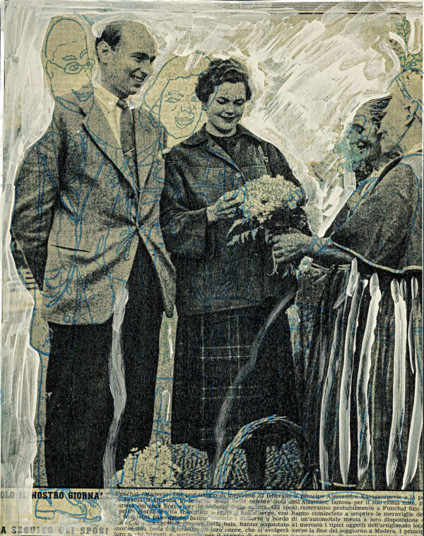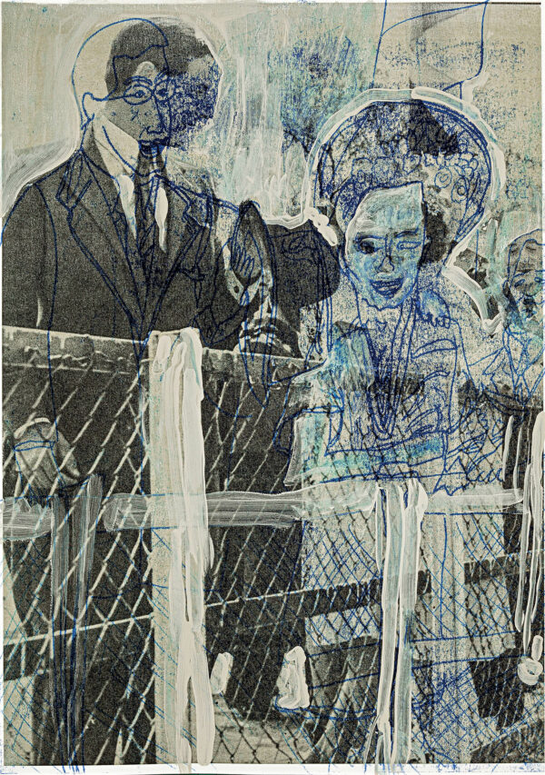 Le dessin s’accompagne d’un travail photographique singulier : il s’insère dans des images de magazines par autoportrait ou les reproduit au papier carbone, superposant les couches.