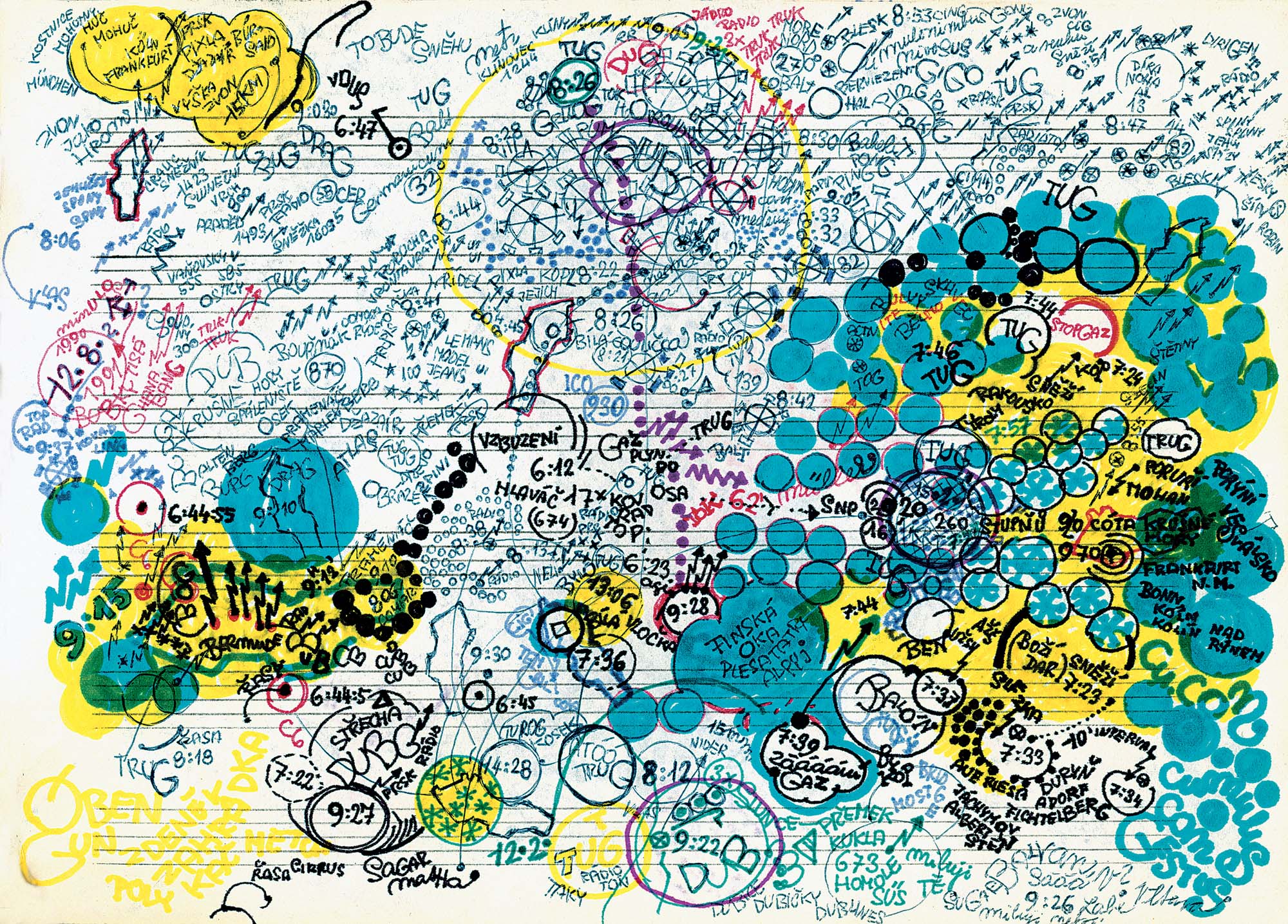 Avec les œuvres de : Mark Cloet, Raimundo Camilo, Pedro Cornas, François De Jonge, Serge Delaunay, Janko Domsic, Jill Galliéni, Johan Geenens, Georgine Hu, Zdeněk Košek, Emil Theodor Lundkvist, Alexandre Alexeïevitch Medvedev, Edmund Monsiel, Luboš Plný, Benoît Pype, Marco Raugei, Manuela Sagona, José Johann Seinen, Harald Stoffers, Martin Thompson, Oswald Tschirtner, Jeanne Tripier, Robert Walser, Adolf Wölfli.